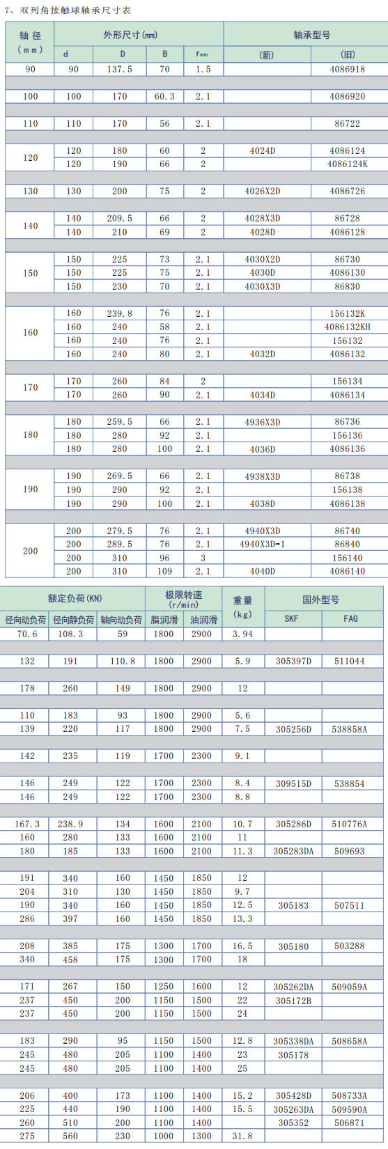 雙列角接觸球軸承