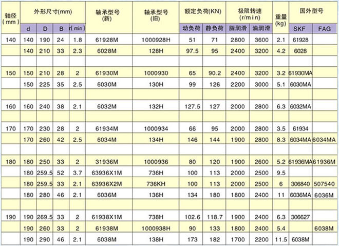 在軋機軋輥上可用于作定位軸承和浮動軸承,軸承不允許承受徑向負荷(軸承外徑與軸承箱配合為間隙配合)。當用作定位軸承時,軸承徑向游隙應(yīng)取C3、C4、C5組游隙,形成大的接觸角,以利于承受純軸向力。