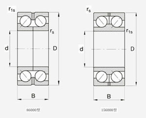 帶兩半內(nèi)圈的軸承(86000型)有軸向負(fù)荷線,向著軸承的軸線分開(鋼球列為背對背配對),并有40°的接觸角。這樣就可以使軸承配置有較高的剛性,而且可承受傾覆力矩。