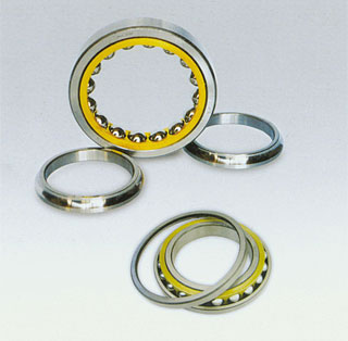 該類型軸承為可分離型軸承,鋼球和套圈之間呈四點(diǎn)接觸,可承受任意方向的軸向負(fù)荷或者徑向、軸向聯(lián)合負(fù)荷。該類型可以限制軸或者外殼的兩面軸向位移在軸承的軸向游隙范圍之內(nèi)。該類型軸承與深溝球軸承比較,當(dāng)徑向游隙相同時(shí)軸向游隙較小,且軸向負(fù)荷較大,極限轉(zhuǎn)速較高,但其軸向承載負(fù)荷低于雙列角接觸球軸承。根據(jù)安裝需要有雙半內(nèi)圈和雙半外圈兩種形式。
