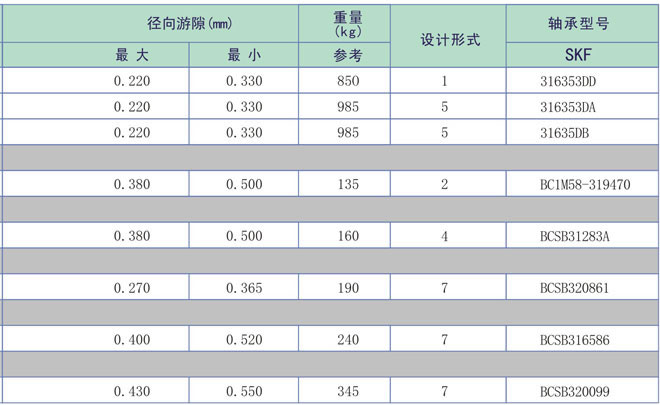 由于滾子數(shù)的減少,其載荷能力要比整體軸承的小些。由于剖分原因,剖分式圓柱滾子軸承在工作時(shí)會(huì)產(chǎn)生一些振動(dòng),限制了其速度能力,約為整體式軸承的50%。如果此數(shù)值難以滿足用戶的設(shè)備要求,欲適當(dāng)提高其速度能力時(shí),請(qǐng)咨詢YHJT/YHE技術(shù)部和技術(shù)開發(fā)服務(wù)部。